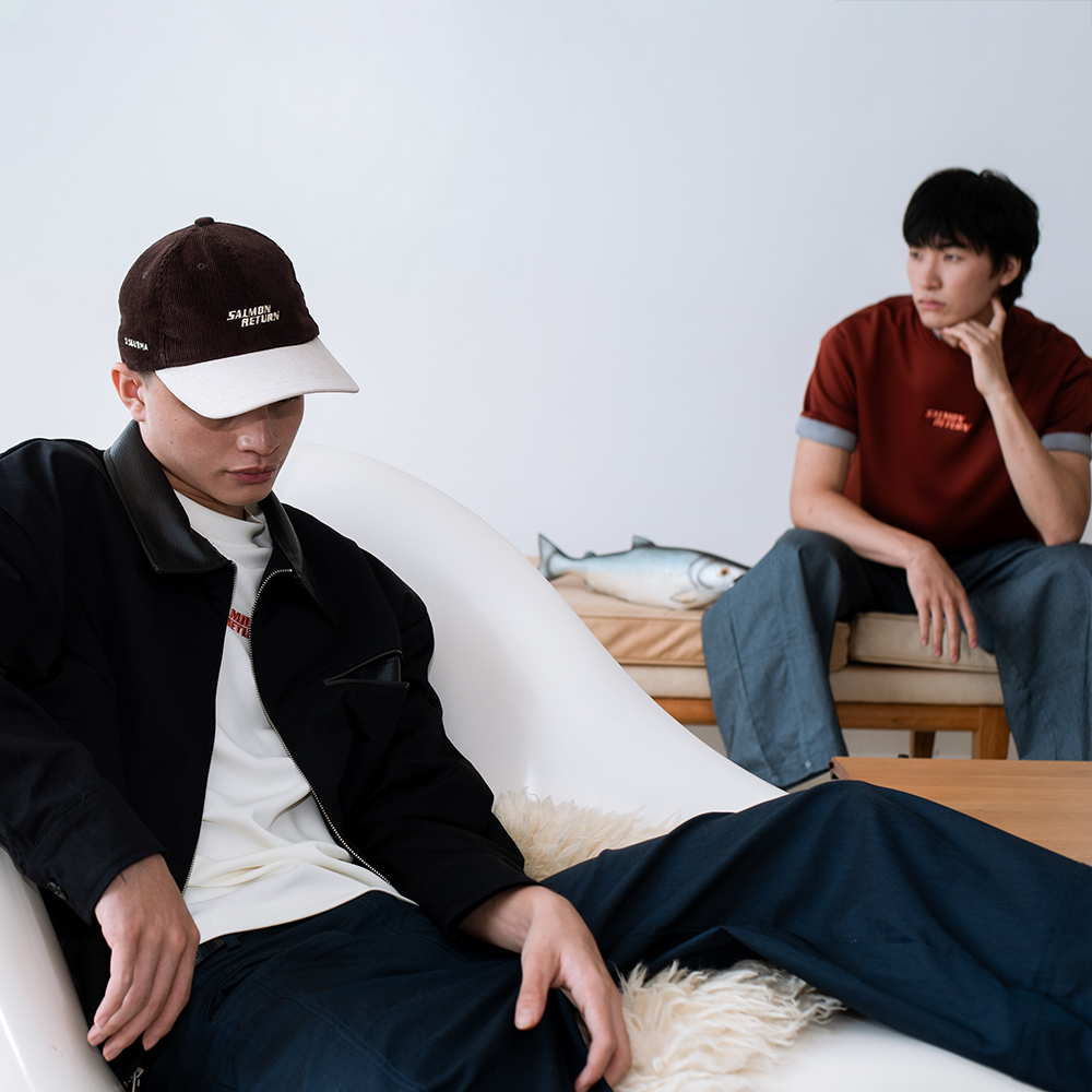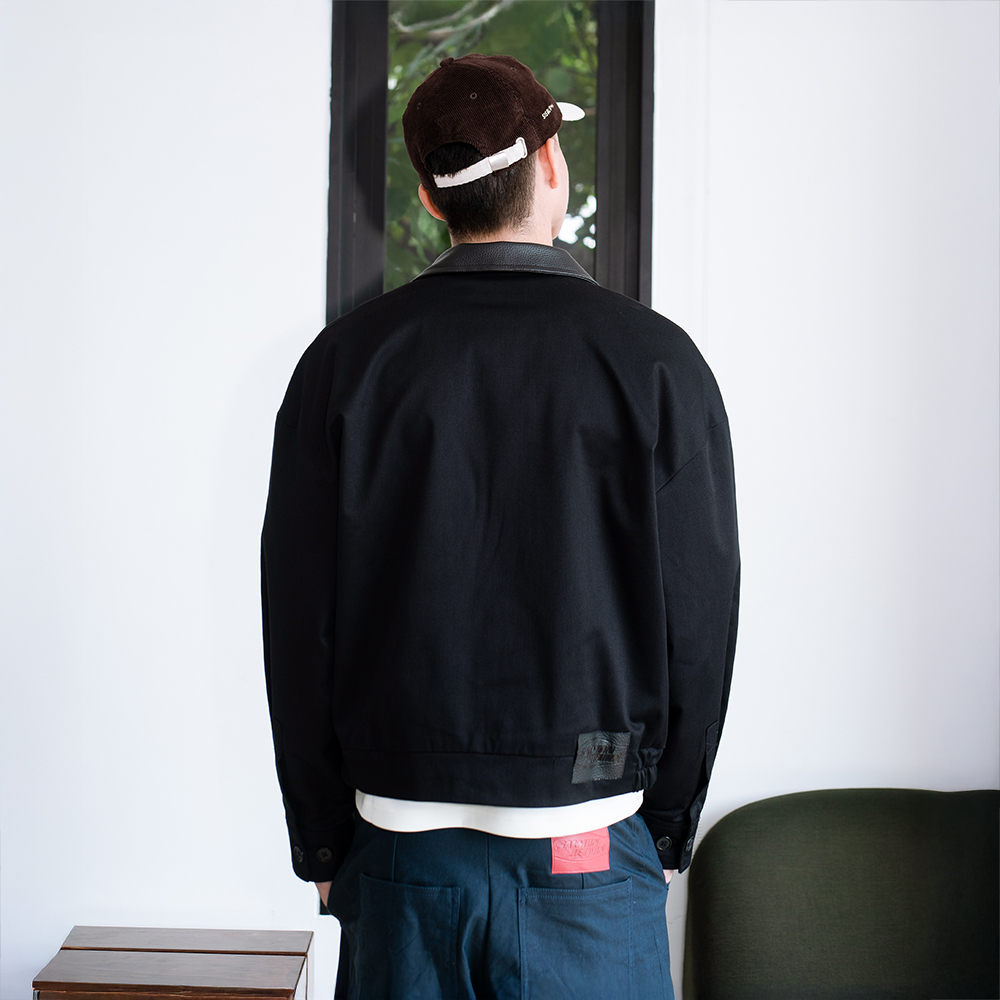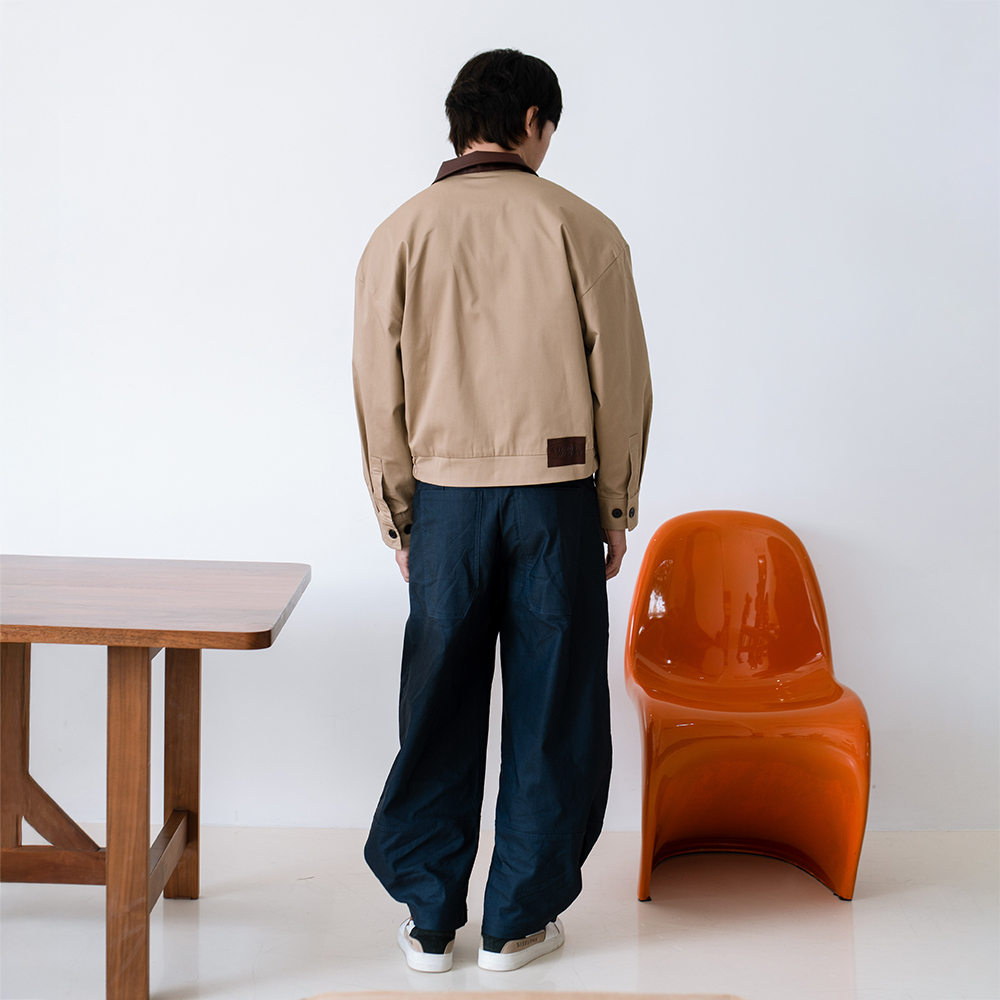 SISBURMA Salmon Run Cotton Twill Varsity Jacket with Leather Collar